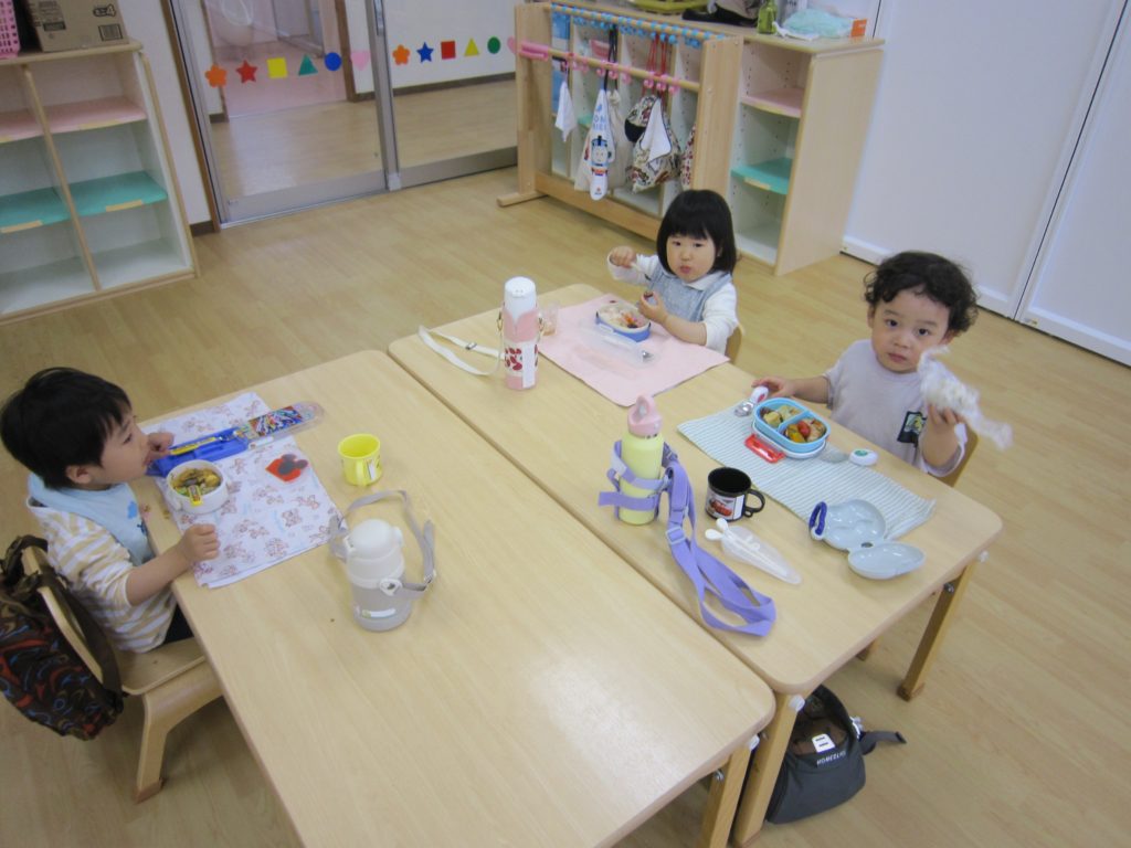 りんご組はすでに4月から始まっています。人数は3人と少ないですが、その分おもちゃもたくさん使えたり、お外遊びもたくさんできます。とても落ち着いて過ごせていて、毎日ゆったりした時間が流れています。ひよこ組やことり組は5月から始まり、慣れるまでは親子一緒に参加します。お部屋でおもちゃで遊んだり、親子一緒にふれあい遊びをしたりします。今後は制作などもしていきます。園庭開放もしているので帰る前に幼稚園の園庭で遊ぶこともできます。