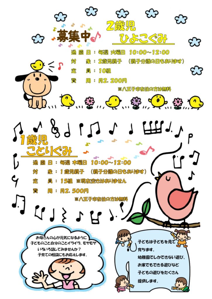 幼稚園説明会を行ないました。園長先生から幼稚園につありました。ありました。その間、離れられるお友だちは幼稚園の先生と一緒におもちゃで遊んでいました。お話しの後は「さんぽ」「ミッキーマウス」のピアノ連弾を聴いたり、「大きな栗の木の下で」を一緒に踊ったり、「どんな色が好き」「アイアイ」のペープサートを見て歌ったりして楽しい時間を過ごしました。